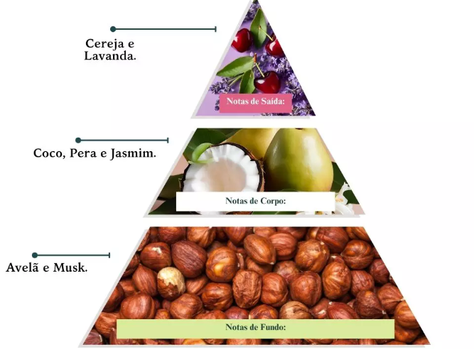 Aroma Cereja com Avelã: Cereja com Avelã é uma fragrância encantadora, que une a doçura da cereja e a suavidade da lavanda com o calor da avelã e a frescura de notas florais. Pertencente à família olfativa Floral Gourmand, esta fragrância é perfeita para quem busca uma experiência olfativa irresistível, que combina elegância e doçura de maneira única.